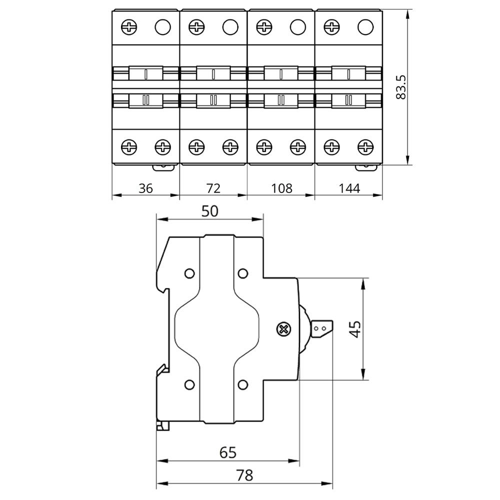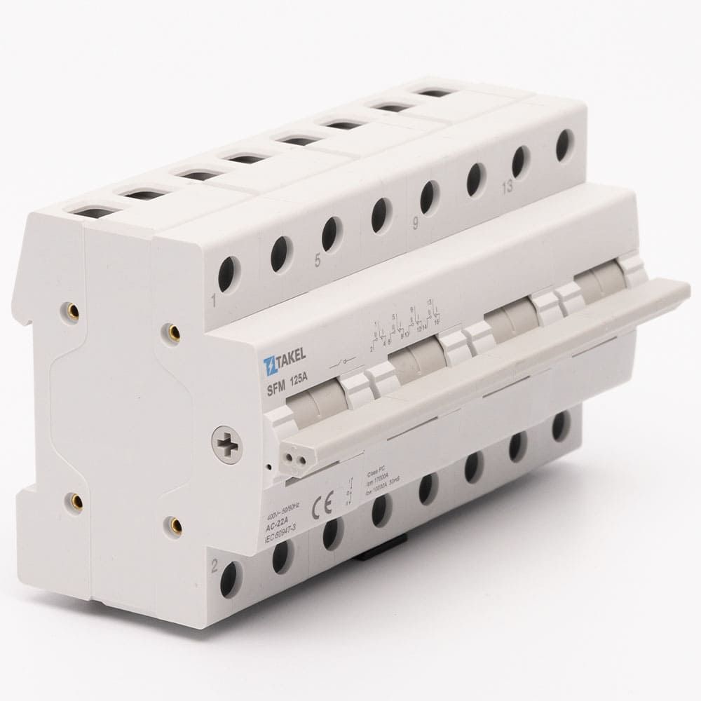 - Ширина одного модуля перемикачів SFM становить 18мм (для перемикачів номіналом до 63А) та 36 мм (для перемикачів номіналом 125 А).
