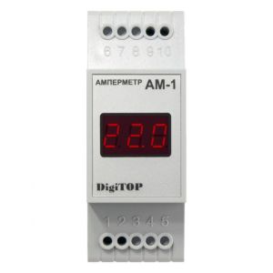 Цифровий Амперметр АМ-1 призначений для вимірювання змінного струму частотою 50 (±1) Гц в однофазній мережі з відображенням поточного значення на цифровому світлодіодному індикаторі. Вимірювання сили струму проводиться за допомогою зовнішнього трансформатора струму (поставляється в комплекті). Негорючий, зносостійкий і ударостійкий корпус найкращим чином забезпечує надійний захист пристрою і безпеку його експлуатації.