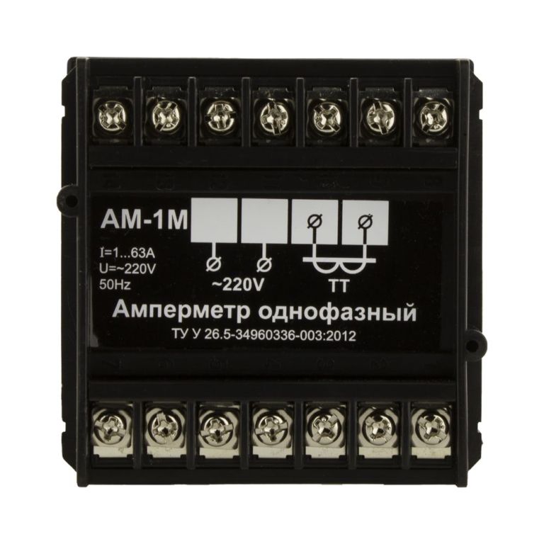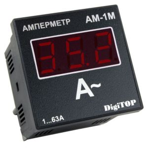 Цифровий Амперметр АМ-1М призначений для вимірювання змінного струму частотою 50 (±1) Гц в однофазній мережі з відображенням поточного значення на цифровому світлодіодному індикаторі. Вимірювання сили струму проводиться за допомогою зовнішнього трансформатора струму (поставляється в комплекті). Негорючий, зносостійкий і ударостійкий корпус найкращим чином забезпечує надійний захист пристрою і безпеку його експлуатації.