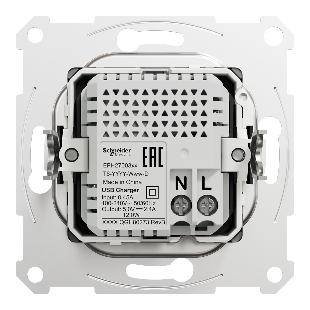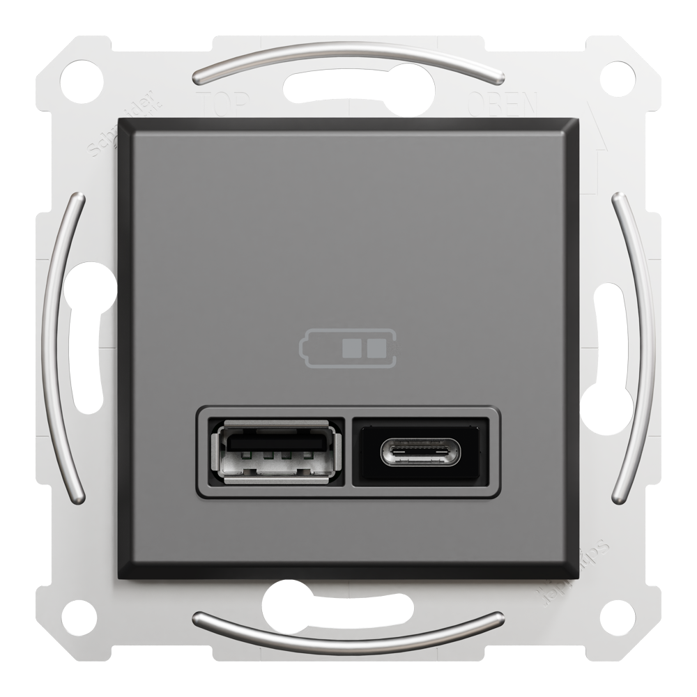 Подвійний зарядний пристрій USB 2.4 A, антрацит, Asfora, Schneider Electric [EPH2700371]
