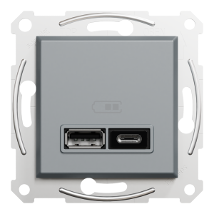 Подвійний зарядний пристрій USB 2.4 A, сталь, Asfora, Schneider Electric [EPH2700362]