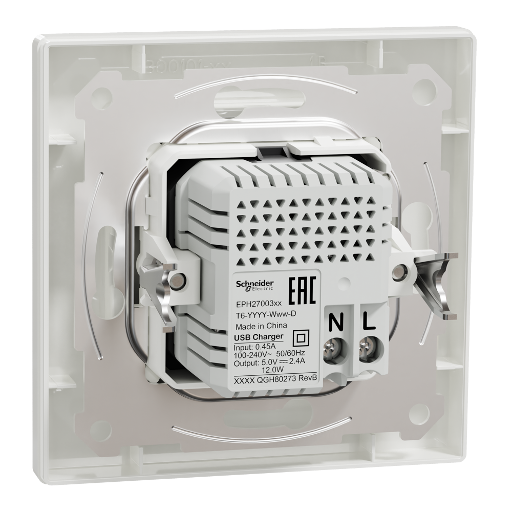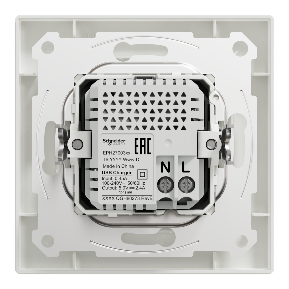Подвійний зарядний пристрій USB 2.4 A, білий, Asfora, Schneider Electric [EPH2700321]