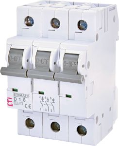 Автоматичний вимикач ETIMAT 6 3p 1.6А, тип D, 6 kA, ETI [002164507]