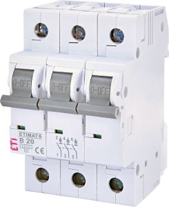 Автоматичний вимикач ETIMAT 6 3p 20А, тип B, 6 kA застосовується для захисту електричних кіл змінного струму від перевантажень і коротких замикань.