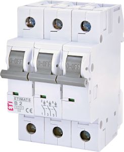 Автоматичний вимикач ETIMAT 6 3p 2А, тип B, 6 kA, ETI [002115510]