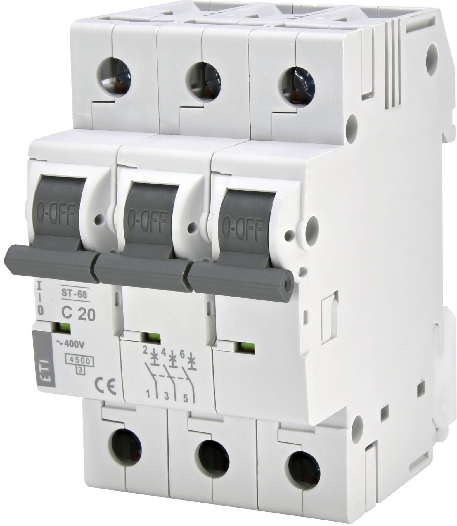 Автоматичний вимикач ST-68 3p 20А, тип C, 4.5 kA, ETI [002185317] (знято з виробництва)