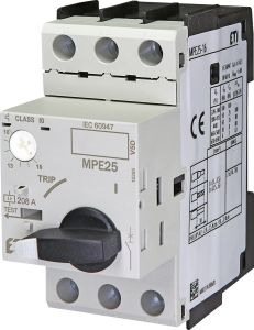 Автоматичний вимикач захисту двигуна MPE25-16 призначений для пуску електродвигунів невеликої потужності і її захисту їх від перевантажень і коротких замикань. Може застосовуватися як аварійний або головний вимикач. Спільно із застосуванням контакторів СЕ або СЕМ можна реалізувати системи дистанційного керування.