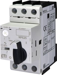 Автоматичний вимикач захисту двигуна MPE25-4 призначений для пуску електродвигунів невеликої потужності і її захисту їх від перевантажень і коротких замикань. Може застосовуватися як аварійний або головний вимикач. Спільно із застосуванням контакторів СЕ або СЕМ можна реалізувати системи дистанційного керування.