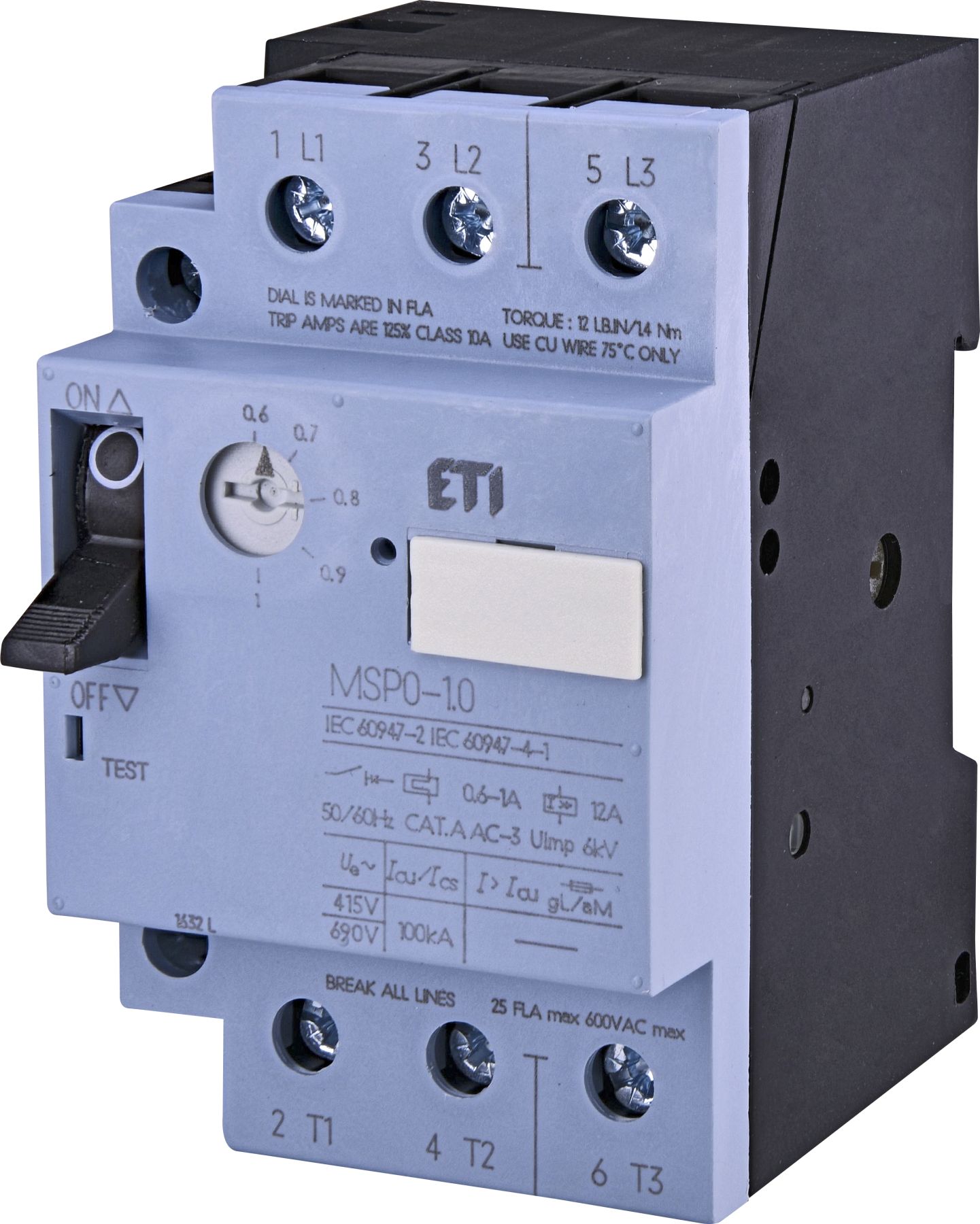 Автоматичний вимикач захисту двигуна MSP0-1.0 (0.25 кВт, 0.6-1A), ETI [004646619]