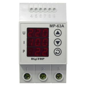 Багатофункціональне реле МР-63А об’єднує в собі кілька приладів – реле напруги і реле напруги з контролем струму. Призначено для захисту електрообладнання від неприпустимих перепадів напруги і від перевищення споживаного струму підключеного навантаження. При перевищенні максимального струму навантаження буде відключена миттєво. Включення навантаження здійснюється автоматично, після відліку часу затримки включення по струму. Крім захисту побутової техніки та електрообладнання, багатофункціональне реле може відображати поточне споживання електроенергії, виводячи дані на екран вже в кіловатах.