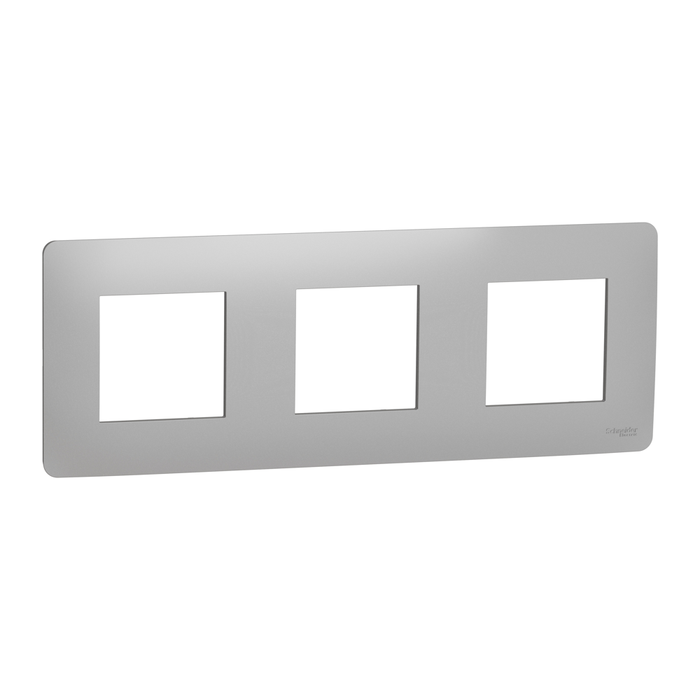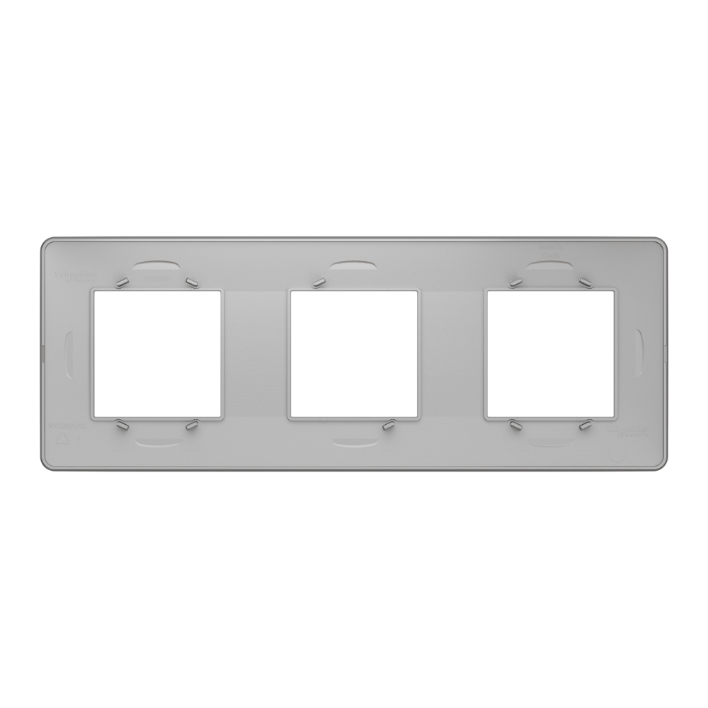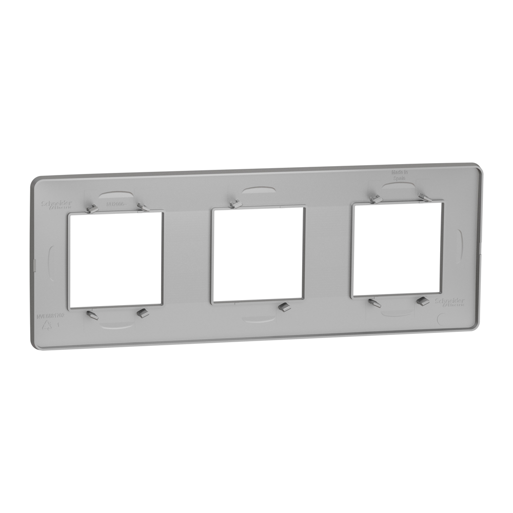 Рамка Schneider Electric New Unica NU200630 кольору алюміній. Вона виготовлена з термопластику ABS-UV-стабілізованого. Рамка - трьохпостова. Ступінь ударозахисту IK04. Крім того, вона екологічно чиста, стійка до ультрафіолету, ацетону, спирту, аміаку, відбілювача, рідкого мила, масла, бензину, рідини для миття вікон. Вона не містить SVHC (особливо небезпечні речовини). Рамка входить в групу Unica Studio. Відповідає стандартам Мек 60669-1, Мек 60884-1. Її ширина 227 мм, висота 85 мм, глибина 10 мм. Не містить галогенів. Спосіб кріплення: затисканням. Вага 0,035 кг. Unica розроблена з розумними функціями, щоб бути гнучкою, простою для розуміння та швидкою для встановлення, забезпечуючи рішення для всіх вимог клієнтів.