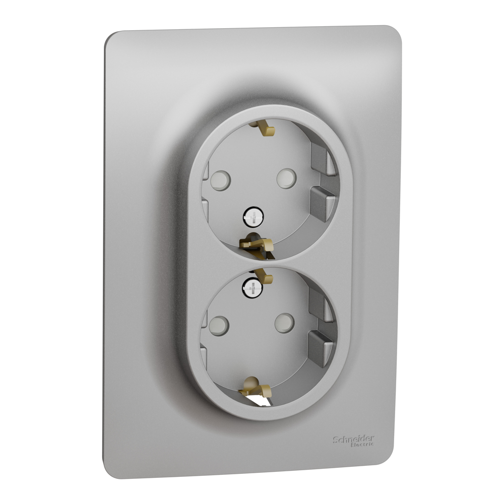 Розетка подвійна з з/к, зі шторками, гвинтовими зажимами, алюміній