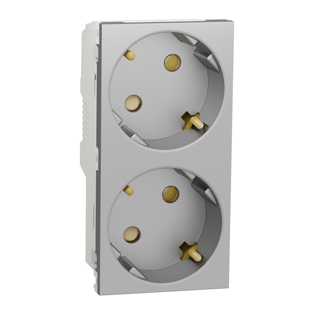 Подвійна розетка 45° зі шторками, з заземленням, алюміній