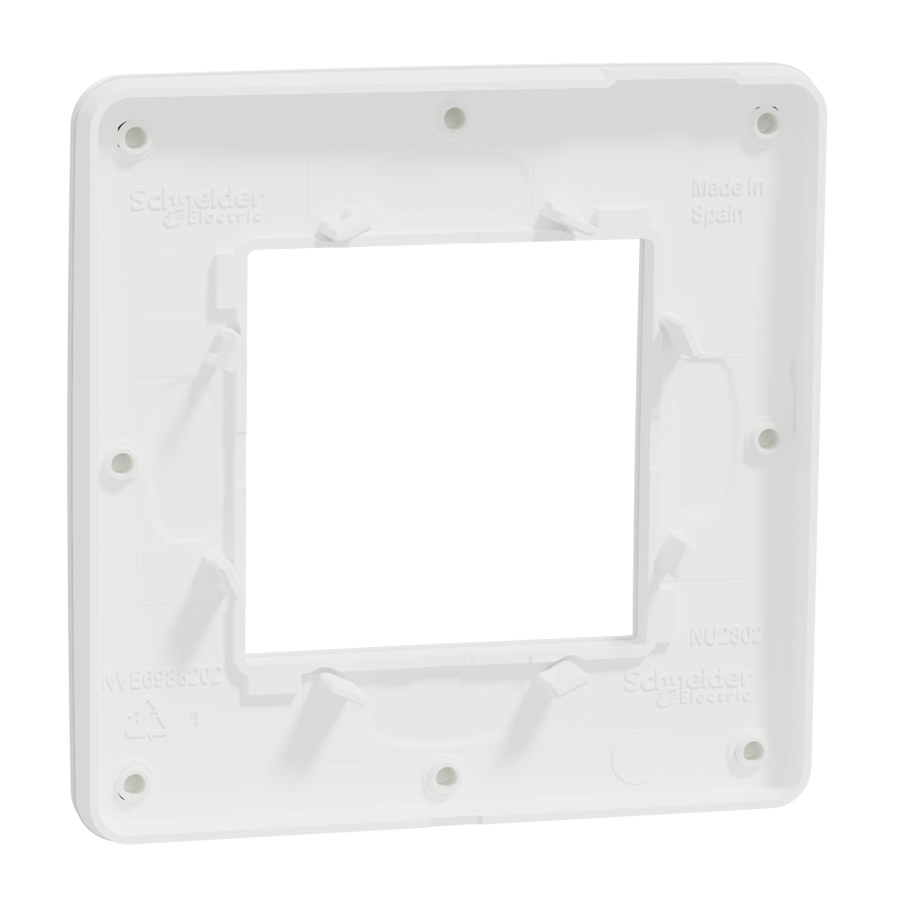 Рамка Schneider Electric New Unica NU280218 білого кольору. Рамка є екологічно чистим продуктом преміум-класу. Рамка - однопостова. Вона виготовлена з термопластику ABS-UV-стабілізованого. Ступінь ударозахисту IK04. Крім того, вона екологічно чиста, стійка до ультрафіолету, ацетону, спирту, аміаку, відбілювача, рідкого мила, масла, бензину, рідини для миття вікон. Вона не містить SVHC (особливо небезпечні речовини). Рамка входить в групу Unica Studio. Відповідає стандартам Мек 60669-1, Мек 60884-1. Її ширина 85 мм, висота 85 мм, глибина 10 мм. Вага 0,02 кг. Не містить галогенів. Спосіб кріплення: затисканням. Unica розроблена з розумними функціями, щоб бути гнучкою, простою для розуміння та швидкою для встановлення, забезпечуючи рішення для всіх вимог клієнтів.