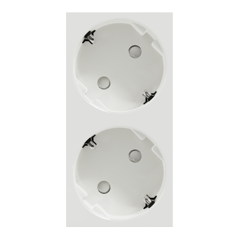 Подвійна розетка 45° зі шторками, з заземленням, біла