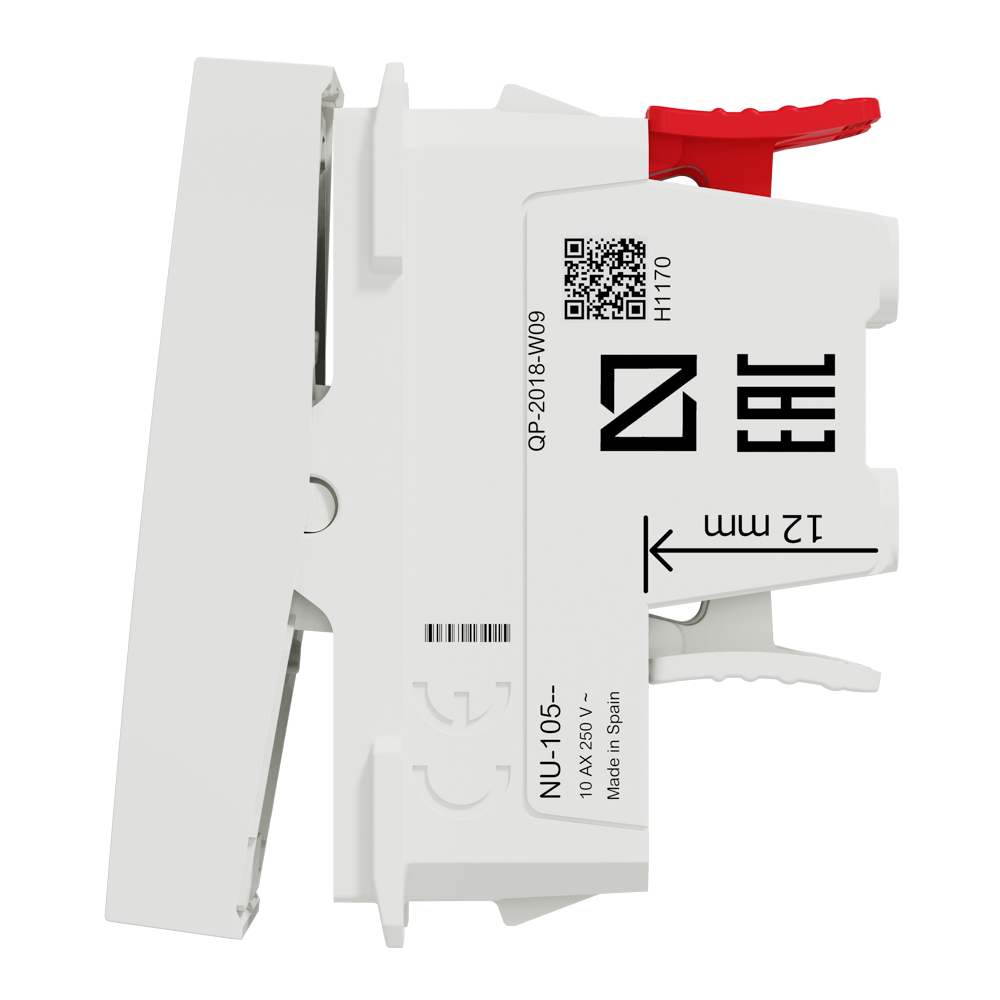 Вимикач, 1-клавішний, 10 А, 1 модуль, білий, Unica New, Schneider Electric [NU310518]