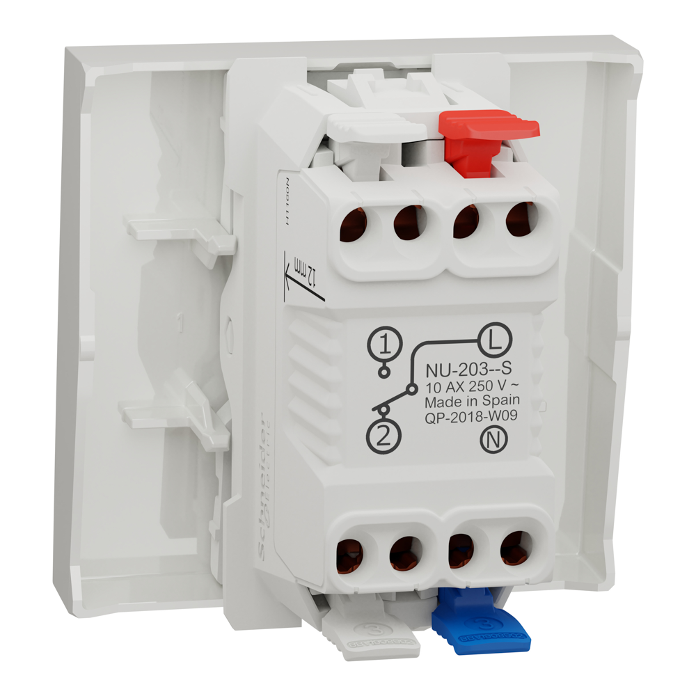 Вимикач, 1-клавішний, 10 А, 2 модулі, білий, Unica New, Schneider Electric [NU320318S]