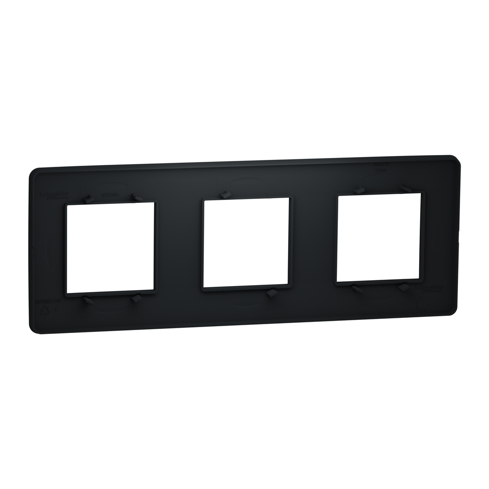 Рамка Schneider Electric New Unica NU200654 кольору антрацит. Вона виготовлена з термопластику ABS-UV-стабілізованого. Рамка - трьохпостова. Ступінь ударозахисту IK04. Крім того, вона екологічно чиста, стійка до ультрафіолету, ацетону, спирту, аміаку, відбілювача, рідкого мила, масла, бензину, рідини для миття вікон. Вона не містить SVHC (особливо небезпечні речовини). Рамка входить в групу Unica Studio. Відповідає стандартам Мек 60669-1, Мек 60884-1. Її ширина 227 мм, висота 85 мм, глибина 10 мм. Не містить галогенів. Спосіб кріплення: затисканням. Вага 0,035 кг. Unica розроблена з розумними функціями, щоб бути гнучкою, простою для розуміння та швидкою для встановлення, забезпечуючи рішення для всіх вимог клієнтів.