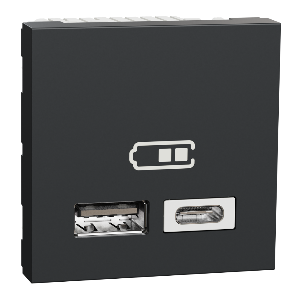USB розетка, 2 модулі, чорна, Unica New, Schneider Electric [NU301854]
