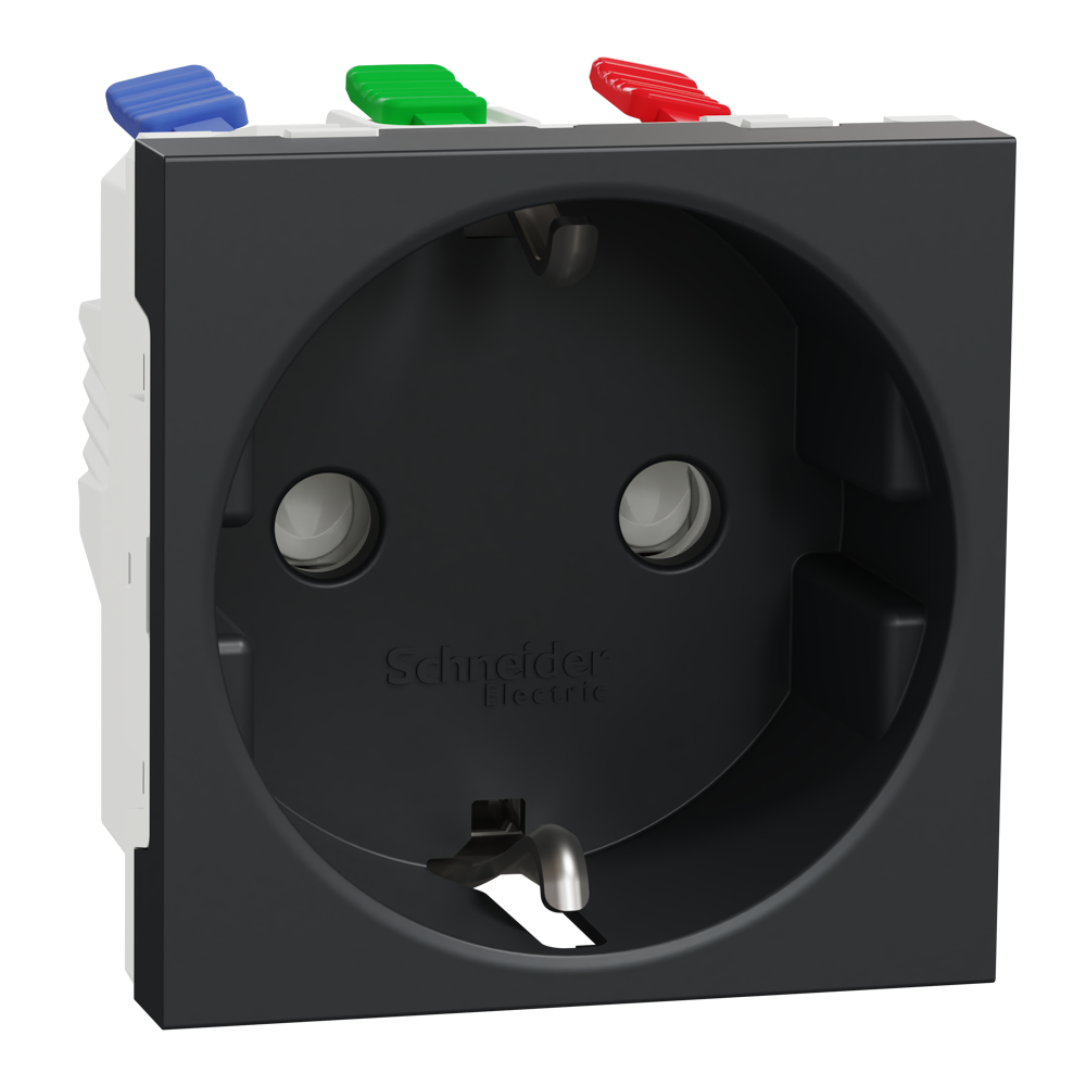Розетка Schneider Electric New Unica NU305754 - це механізм кольору антрацит. Конфігурація полюса цієї розетки 2P + E з шторкою, що забезпечує захист та безпеку. Цей пристрій відповідає німецьким стандартам. Рівень діелектричної міцності, тобто напруга, яку може витримати матеріал, з якого виконана ця розетка, для даної товщини стінки до пробою діелектрика, становить 2000 В. Її номінальний струм становить 16 АА. Її ширина 45 мм, висота 45 мм, глибина 42 мм. З глибиною закладення 32 мм. Тип монтажу - прихований. Глянцева поверхня створює відчуття елегантності та комфорту в кімнаті. Ступінь захисту IP21D. Він досягає рівня захисту IK04, що допомагає захистити від ударів. Його з’єднувальні клеми є самозажимними. Розетка виготовлена з полікарбонату, що робить її міцною та довговічною. Вона отримала сертифікати AENOR, EAC. Будучи екологічним продуктом преміум-класу, цей пристрій є екологічно чистим. New Unica включає в себе різномаїття нових дизайнів, кольорів і матеріалів. Користувачі отримують задоволення від привабливого дизайну, який відповідає їх стилю, та інноваційних продуктів. New Unica має розумні функції, є гнучкою, зрозумілою та швидко встановлюється.