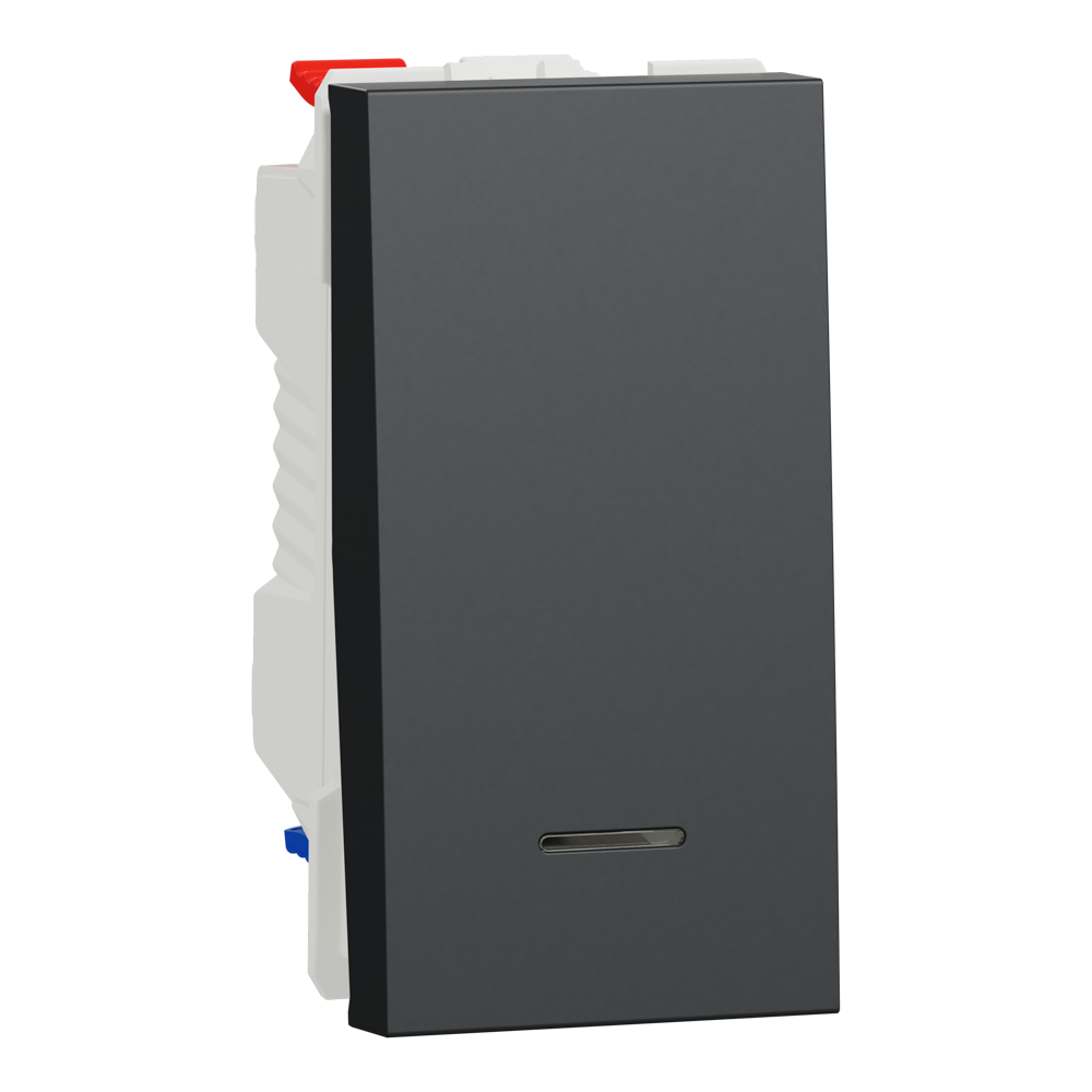 Вимикач, 1-клавішний, 10 А, 1 модуль, чорний, Unica New, Schneider Electric [NU310354S]