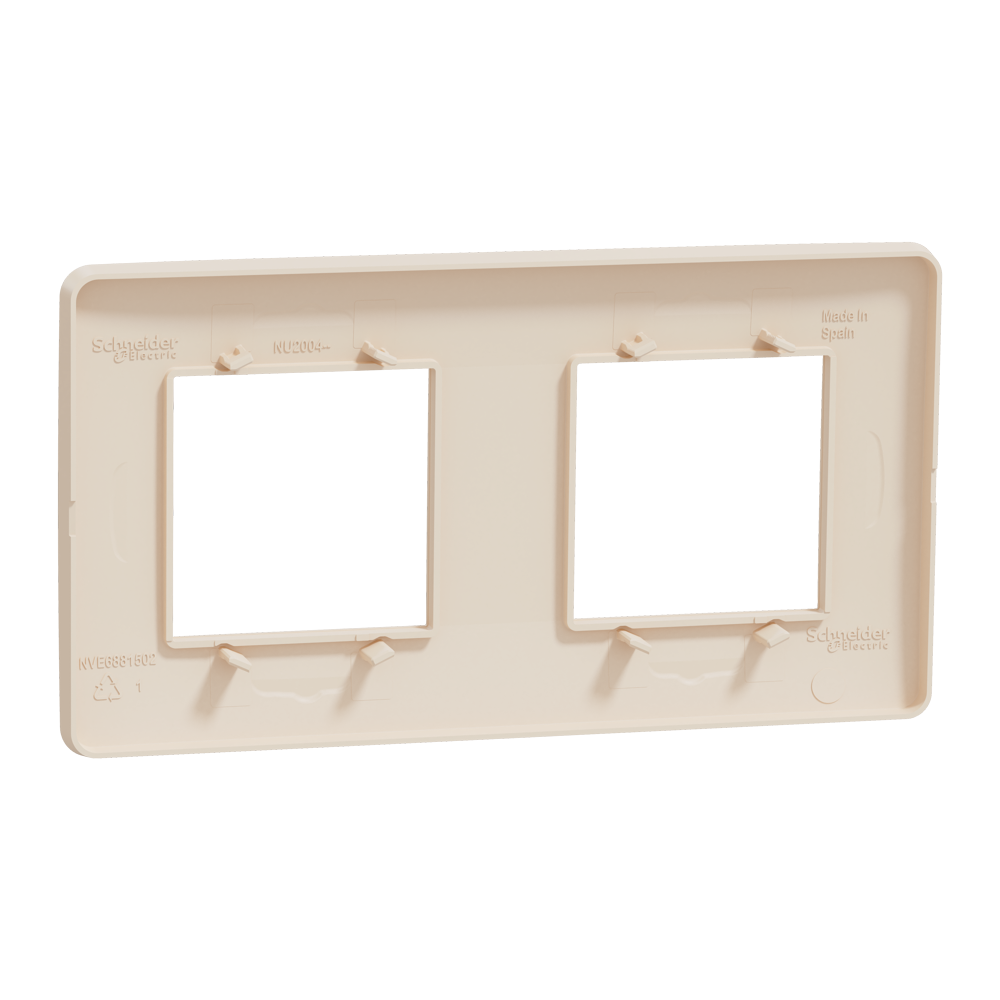 Рамка Schneider Electric New Unica NU200444 бежевого кольору. Рамка є екологічно чистим продуктом преміум-класу. Рамка - двопостова. Вона виготовлена з термопластику ABS-UV-стабілізованого. Ступінь ударозахисту IK04. Крім того, вона екологічно чиста, стійка до ультрафіолету, ацетону, спирту, аміаку, відбілювача, рідкого мила, масла, бензину, рідини для миття вікон. Вона не містить SVHC (особливо небезпечні речовини). Рамка входить в групу Unica Studio. Відповідає стандартам Мек 60669-1, Мек 60884-1. Її ширина 185 мм, висота 85 мм, глибина 10 мм. Вага 0,021 кг. Не містить галогенів. Спосіб кріплення: затисканням. Unica розроблена з розумними функціями, щоб бути гнучкою, простою для розуміння та швидкою для встановлення, забезпечуючи рішення для всіх вимог клієнтів.