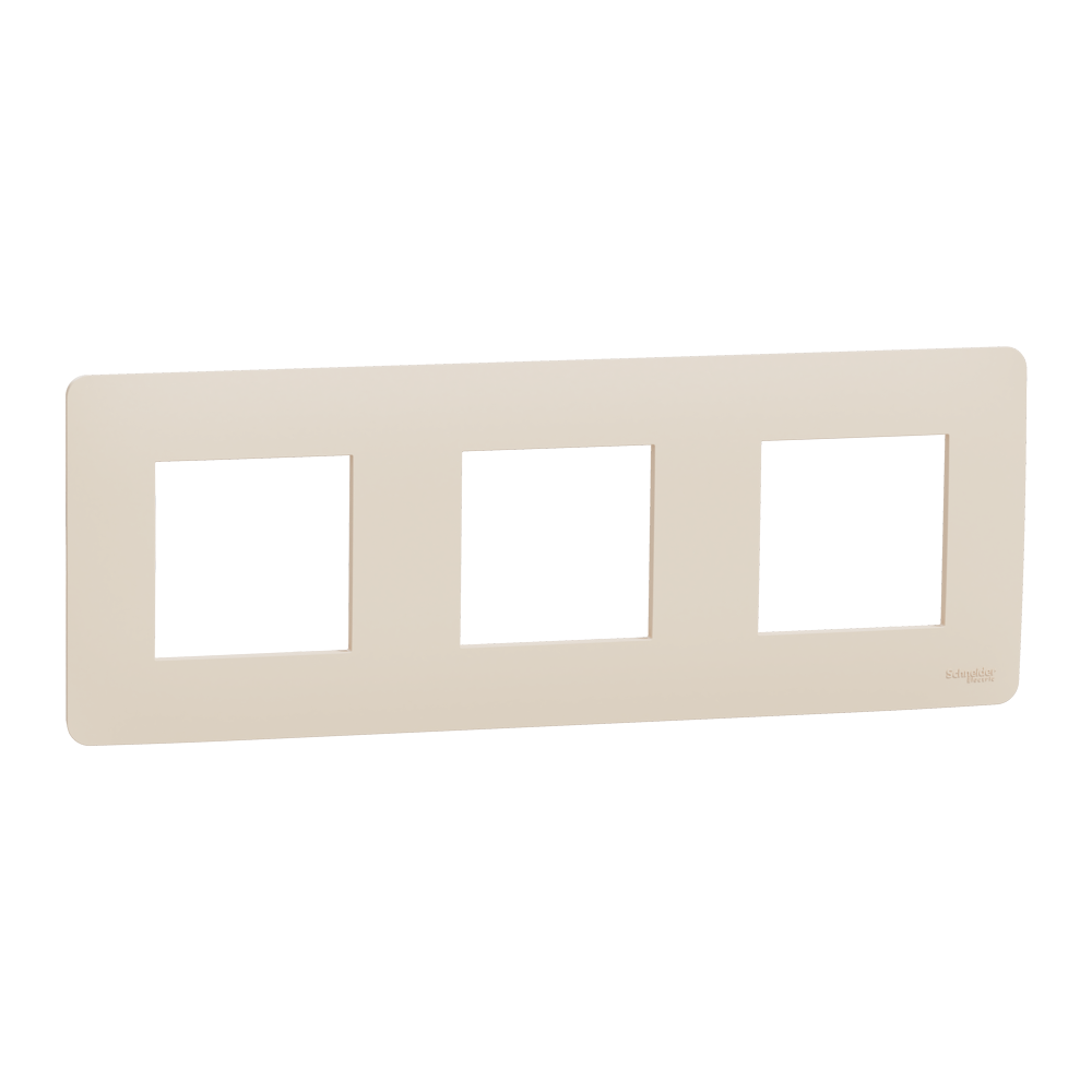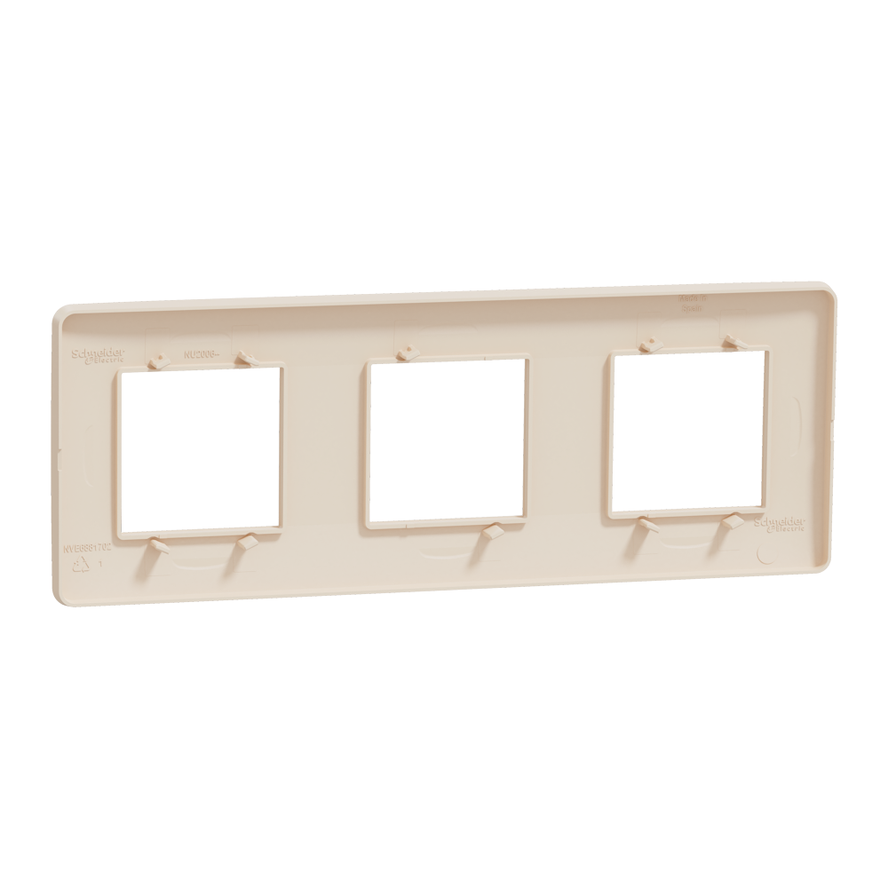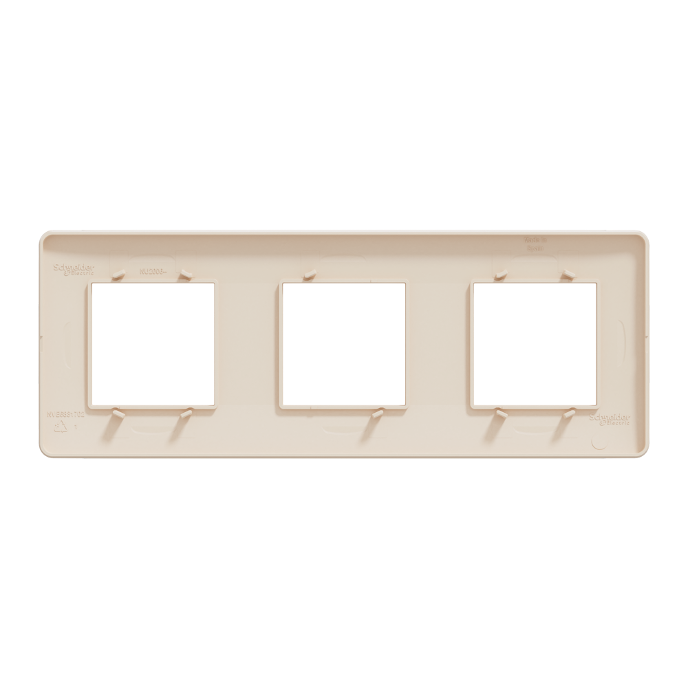 Рамка Schneider Electric New Unica NU200644 бежевого кольору. Вона виготовлена з термопластику ABS-UV-стабілізованого. Рамка - трьохпостова. Ступінь ударозахисту IK04. Крім того, вона екологічно чиста, стійка до ультрафіолету, ацетону, спирту, аміаку, відбілювача, рідкого мила, масла, бензину, рідини для миття вікон. Вона не містить SVHC (особливо небезпечні речовини). Рамка входить в групу Unica Studio. Відповідає стандартам Мек 60669-1, Мек 60884-1. Її ширина 227 мм, висота 85 мм, глибина 10 мм. Не містить галогенів. Спосіб кріплення: затисканням. Вага 0,035 кг. Unica розроблена з розумними функціями, щоб бути гнучкою, простою для розуміння та швидкою для встановлення, забезпечуючи рішення для всіх вимог клієнтів.