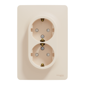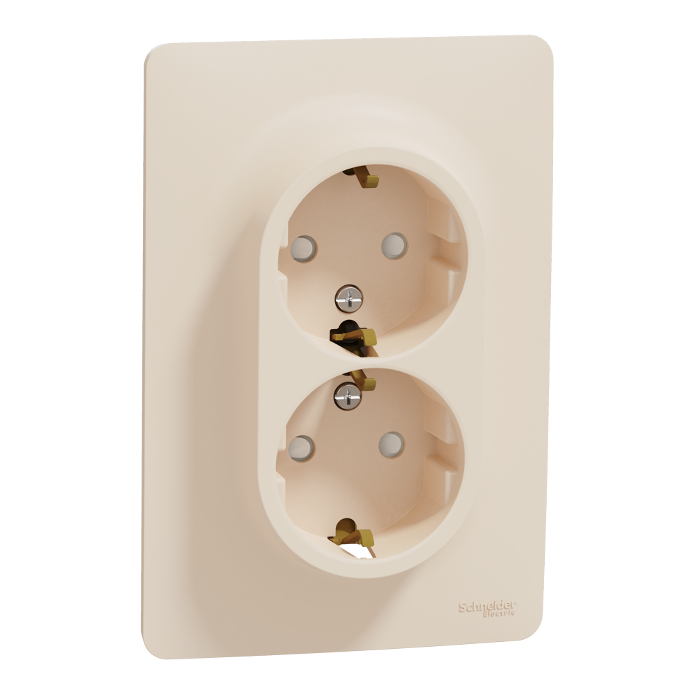 Розетка подвійна з заземленням та шторками, гвинтові зажими, бежева Unica New