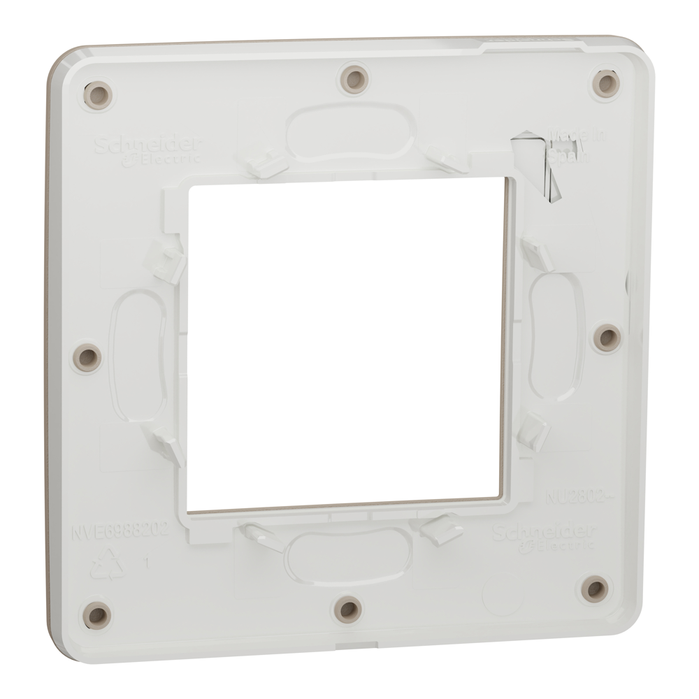 Рамка Schneider Electric New Unica NU280226 має пісочний/білий колір. Рамка є екологічно чистим продуктом преміум-класу. Рамка - однопостова. Вона виготовлена з термопластику ABS-UV-стабілізованого. Ступінь ударозахисту IK04. Крім того, вона екологічно чиста, стійка до ультрафіолету, ацетону, спирту, аміаку, відбілювача, рідкого мила, масла, бензину, рідини для миття вікон. Вона не містить SVHC (особливо небезпечні речовини). Рамка входить в групу Unica Studio. Відповідає стандартам Мек 60669-1, Мек 60884-1. Її ширина 85 мм, висота 85 мм, глибина 10 мм. Вага 0,02 кг. Не містить галогенів. Спосіб кріплення: затисканням. Unica розроблена з розумними функціями, щоб бути гнучкою, простою для розуміння та швидкою для встановлення, забезпечуючи рішення для всіх вимог клієнтів.
