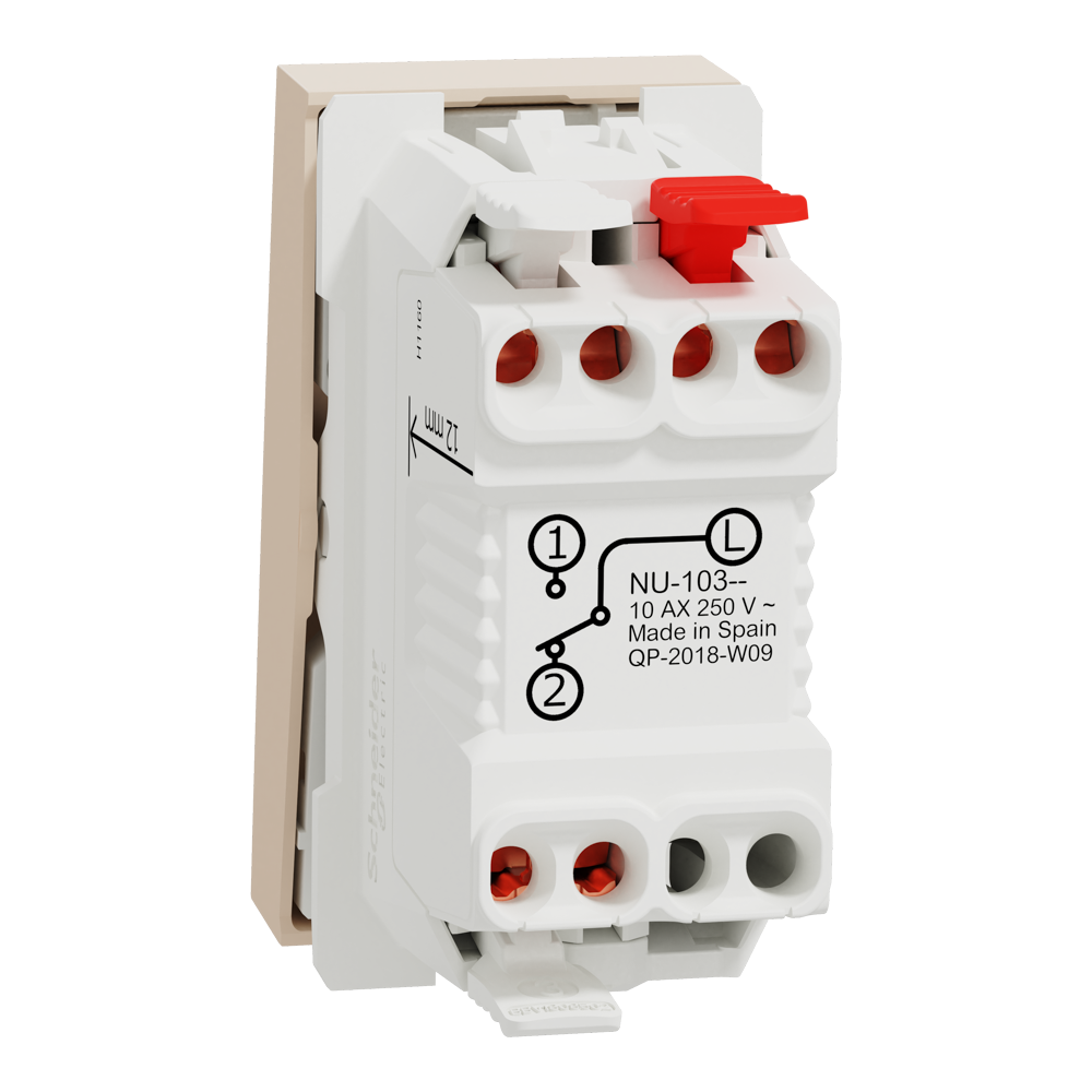 Перемикач Schneider Electric New Unica NU310344 - це механізм бежевого кольору. Це одноклавішний прохідний вимикач шириною 1 модуль. Тип кріплення - затискачі. Його номінальний струм становить 10A. Його ширина 22,5 мм, висота 45 мм, глибина 34,25 мм, глибина закладення 21,15 мм. Глянцева поверхня створює відчуття елегантності та комфорту в кімнаті. Ступінь захисту IP21D. Вимикач має безгвинтові клеми підключення. Він отримав сертифікат AENOR, CE, EAC, NF. New Unica включає в себе різномаїття нових дизайнів, кольорів і матеріалів. Користувачі отримують задоволення від привабливого дизайну, який відповідає їх стилю, та інноваційних продуктів. New Unica має розумні функції, є гнучкою, зрозумілою та швидко встановлюється.