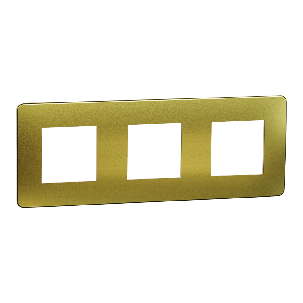 Cover frame, Unica Studio Metal, 3 gang, 3 x 2 modules, gold or beige