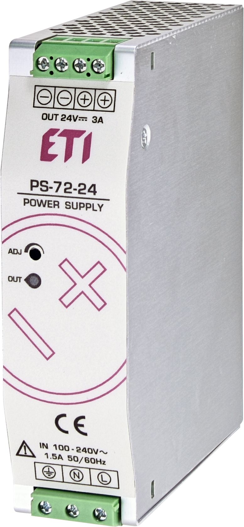 Блок живлення PS-72-24 (Вхід: 100-240V AC/140-340V DC; Вихід: 24-28V DC/75W/3A), ETI [004656681]