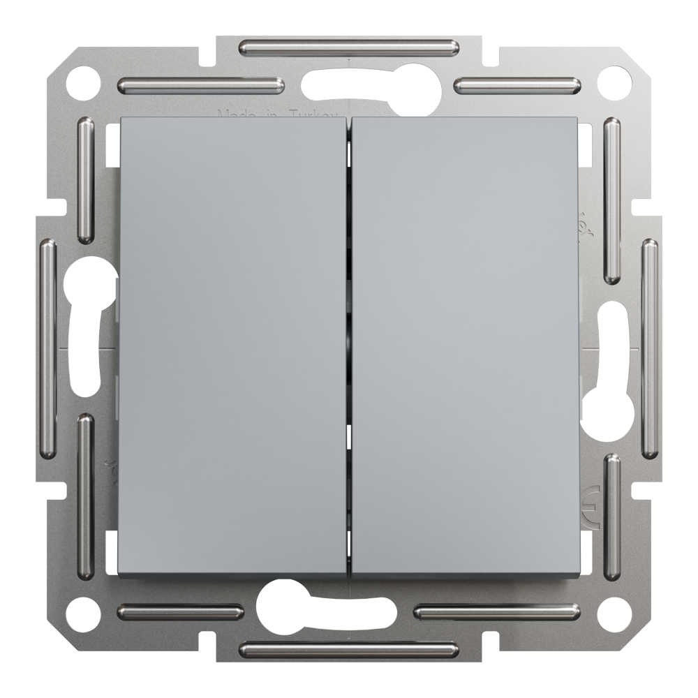 Двоклавішний вимикач кнопковий, самозажимний, Asfora сталь, Schneider Electric [EPH1100162]