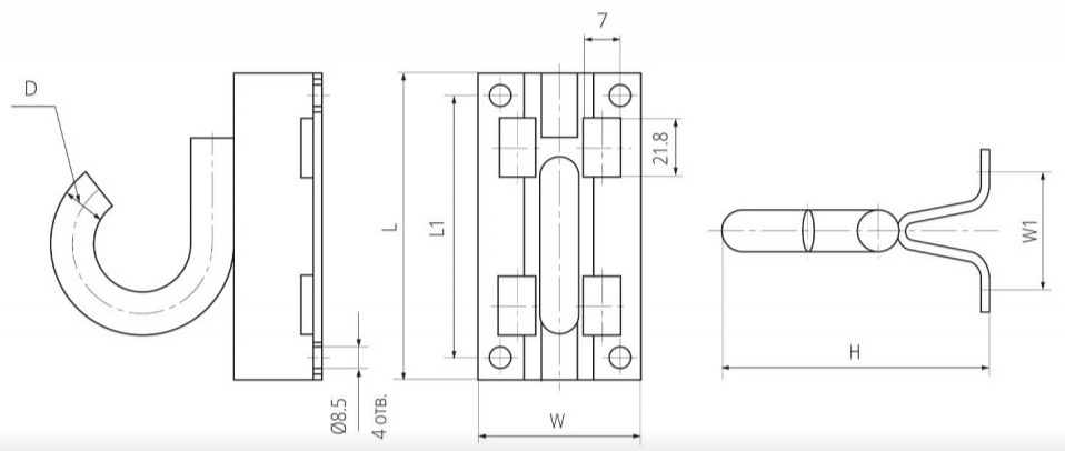 ∅d = М8; ∅D = 16.0 мм; W = 72.0 мм; W = 56.0 мм; L = 115.0 мм; L1 = 95.0 мм; Н = 103.0 мм