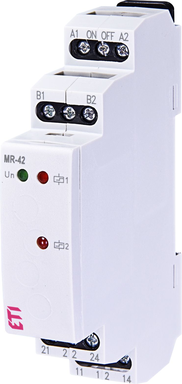 Імпульсне реле з функцією "пам'ять" MR-42 використовується для управління обладнанням за допомогою імпульсних сигналів. При кожній подачі імпульсу відбувається зміна положення контактної групи. Функції реле MR-42 дозволяють управляти двома групами контактів.