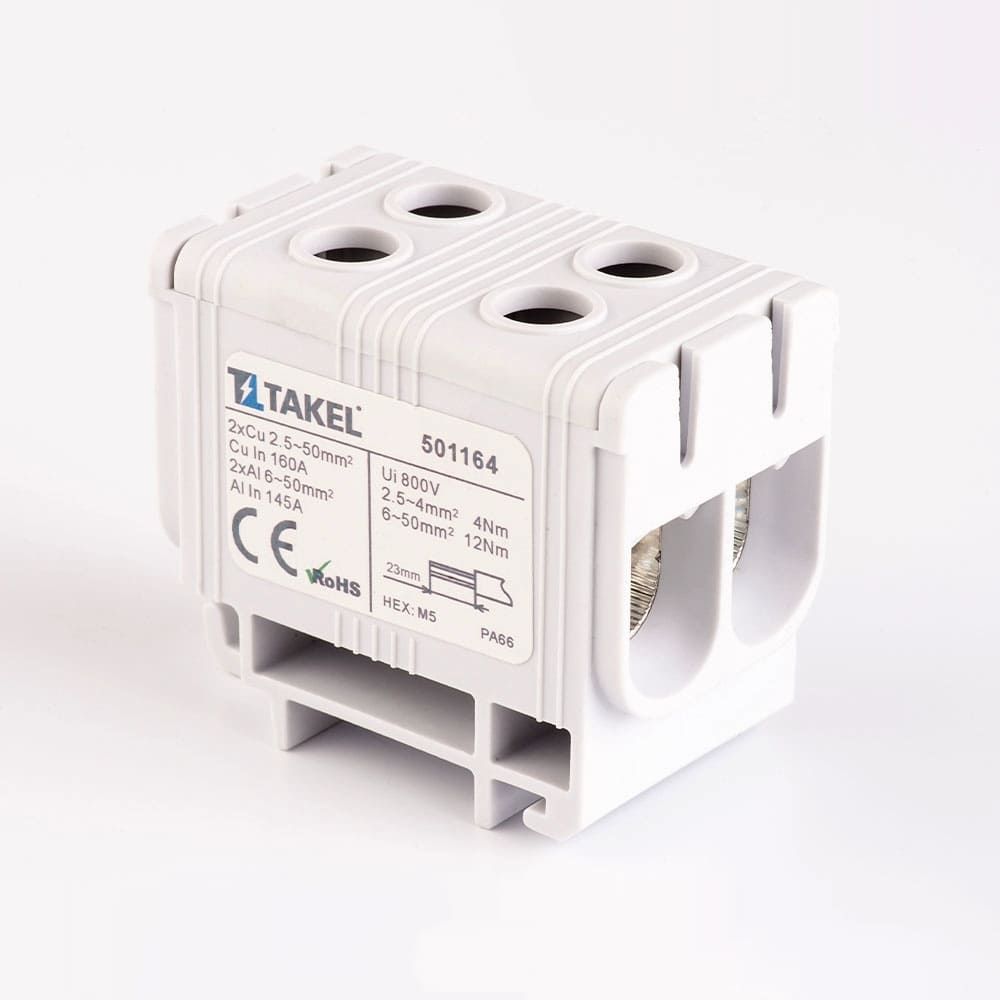 Клема силова ввідна подвійна UTB 6-50, сірий, TAKEL [501164]