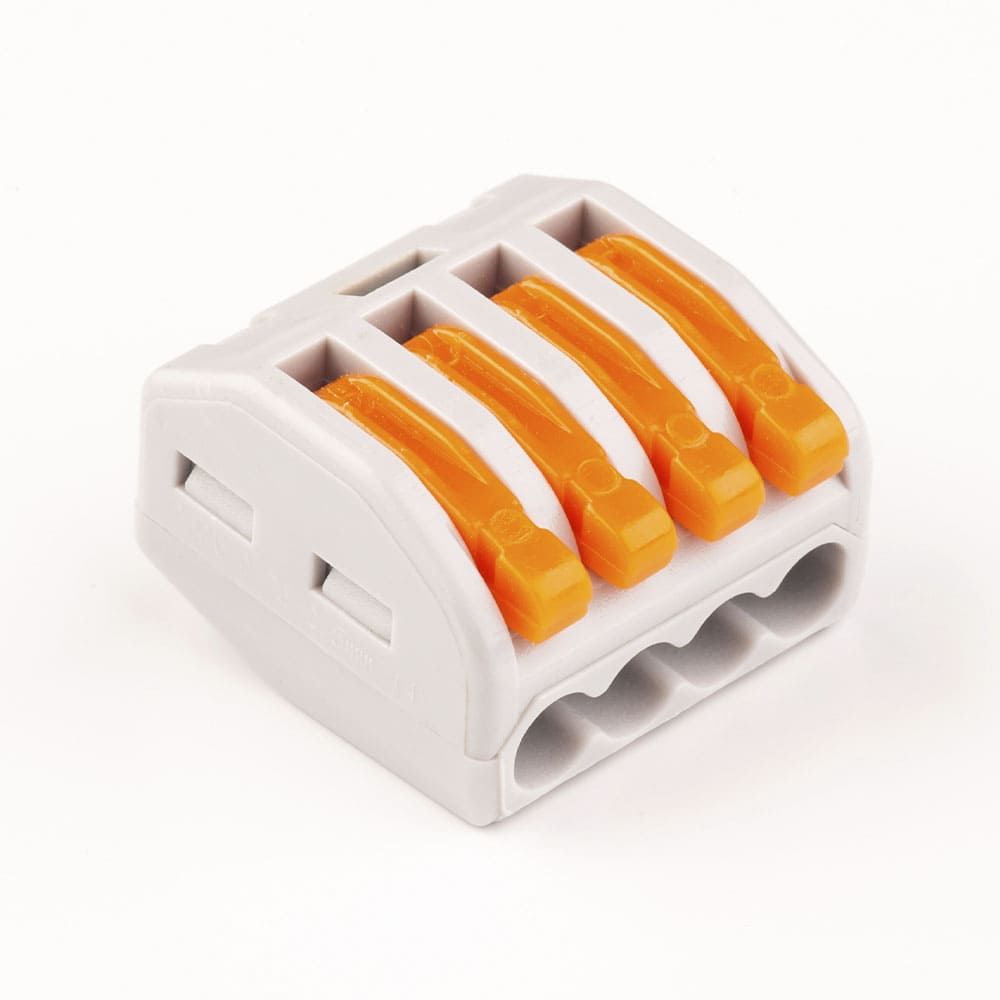 Клема з'єднувальна СМК-414 - це клеми СМК з плоско-пружинним затискачем призначені для багаторазового приєднання та відгалуження одножильних і багатожильних провідників в електричних ланцюгах змінного струму. Корпус клем виготовлений із пластику, а контактна частина: із лудженої латуні монтаж не вимагає використання інструментів.