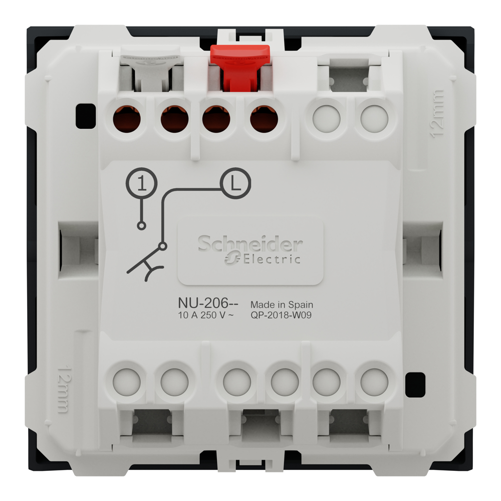 Кнопковий вимикач Schneider Electric New Unica NU320654 - це механізм кольору антрацит. Клеми підключення - безгвинтові. Виготовляється з CuZn37, PBT (полібутилентерефталат) GF30, PC (полікарбонат) GF10 FR, термопластичний матеріал ABS-UV. Його ширина 45 мм, висота 45 мм, глибина 34,25 мм, глибина закладення 21,15 мм, Вага 0,0231 кг. Крім того, він не містить галогенів. Тип кріплення - затискачі. Цей продукт продається в 10. Більше того, він відповідає стандарту IEC 60669-1, директивам LV та Ro HS. Він також отримав сертифікат AENOR, CE, EAC, NF. Крім того він є безпечним для навколишнього середовища, стійким до ультрафіолету, ацетону, спирту, аміаку, відбілювача, рідкого мила, масла, бензину, рідини для миття вікон. Діелектрична міцність кнопкового вимикача становить 2000 В, а номінальний струм - 10 А. Кнопковий вимикач не містить SVHC (особливо небезпечних речовин). Його поверхня пофарбована порошковою фарбою.