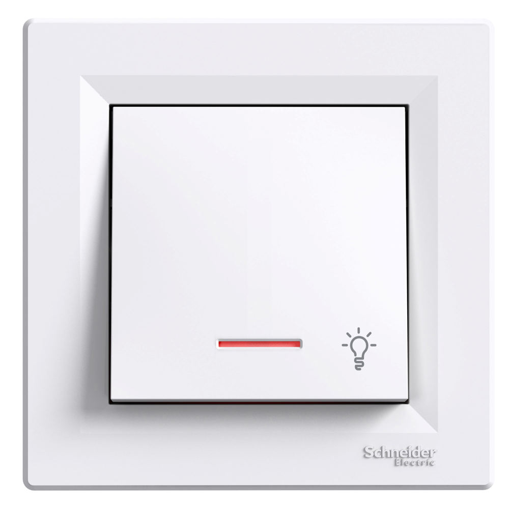 Кнопковий вимикач, ''світло'', з підсвіткою, самозажимний, білий Asfora, Schneider Electric [EPH1800121]
