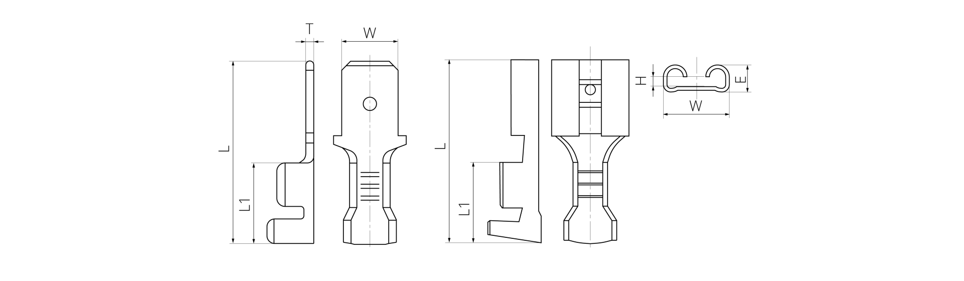 W= 6.3 мм; L = 19.8 мм; L1= 7.7 мм; Т = 0.8 мм