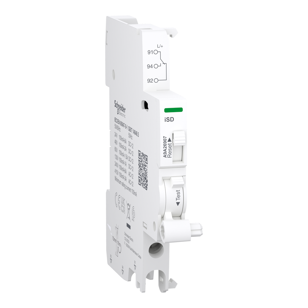 Auxiliary contact, Acti9 A9A, iSD, 1 C/O, 100mA to 6A, 24VAC to 415VAC, 24VDC to 130VDC, bottom connection