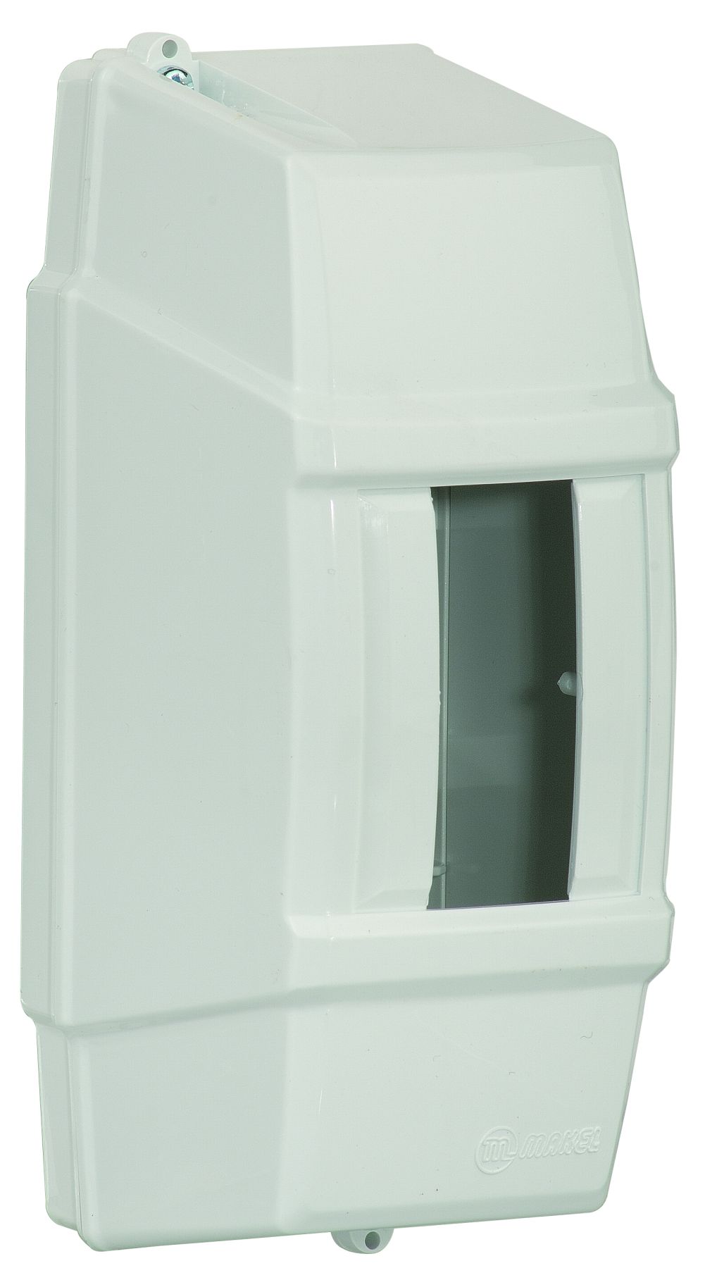 Призначений для встановлення низьковольтного обладнання (автоматичні вимикачі, реле контролю напруги та освітлення тощо). У житлових та нежитлових приміщеннях. Кришка зроблена з напівпрозорого пластику і фіксується клямкою, бокс виготовлений з білого пластику (Halogen-Free), що при горінні не виділяє шкідливих речовин і є міцним та безпечним.