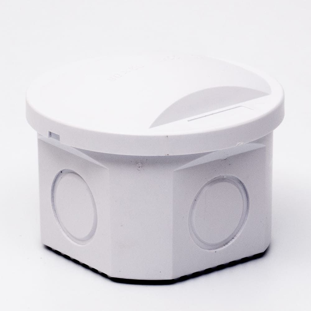 Коробка розподільча вологостійка ІР55 80х50 призначена для з'єднання і розгалуження електричних проводів і кабелю в умовах зовнішнього монтажу.
