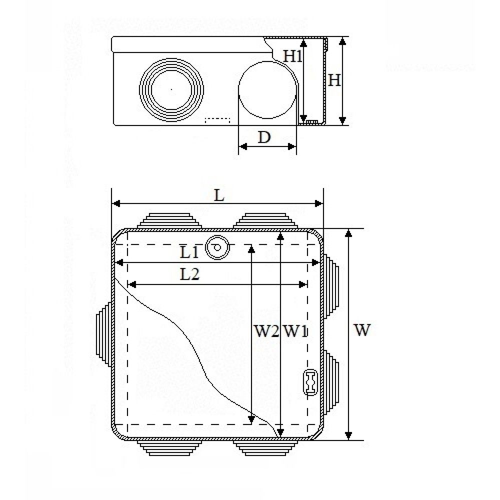 - коробка має невеликі зовнішні виступи на дні нижньої частини корпусу для дистанціювання від поверхні, до якої вони монтуються;