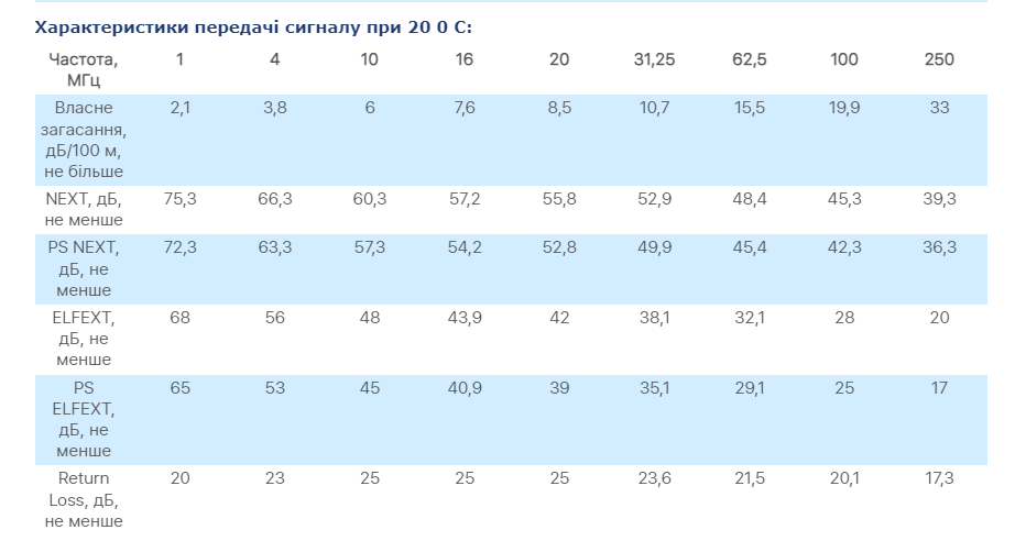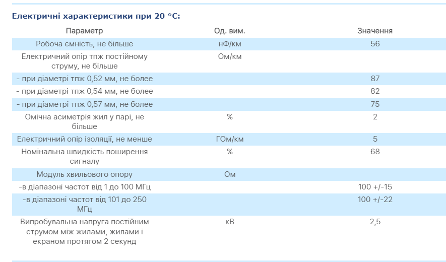 Вимога до кабелю: ДСТУ IEC 61156-5, ДСТУ EN 50288-6-1, ТУ У 27.3-05758730-097:2018