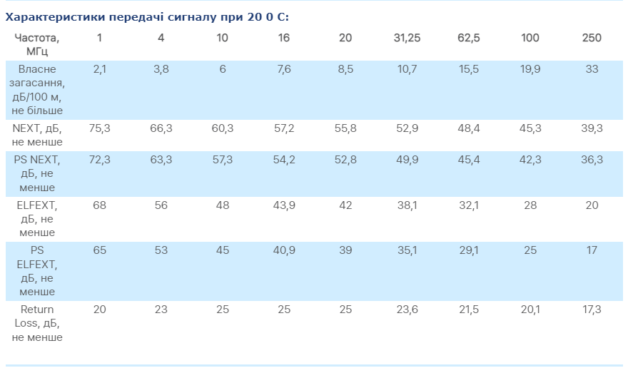 Вимога до кабелю: ДСТУ IEC 61156-5, ДСТУ EN 50288-5-1, ТУ У 27.3-05758730-097:2018