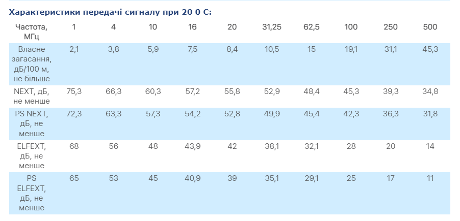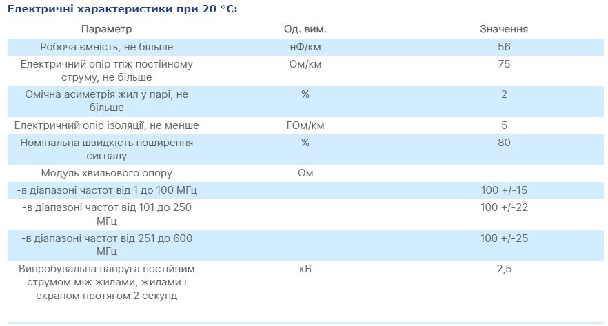 Вимога до кабелю: ДСТУ IEC 61156-5, ДСТУ EN 50288-4-1, ТУ У 27.3-05758730-097:2018.