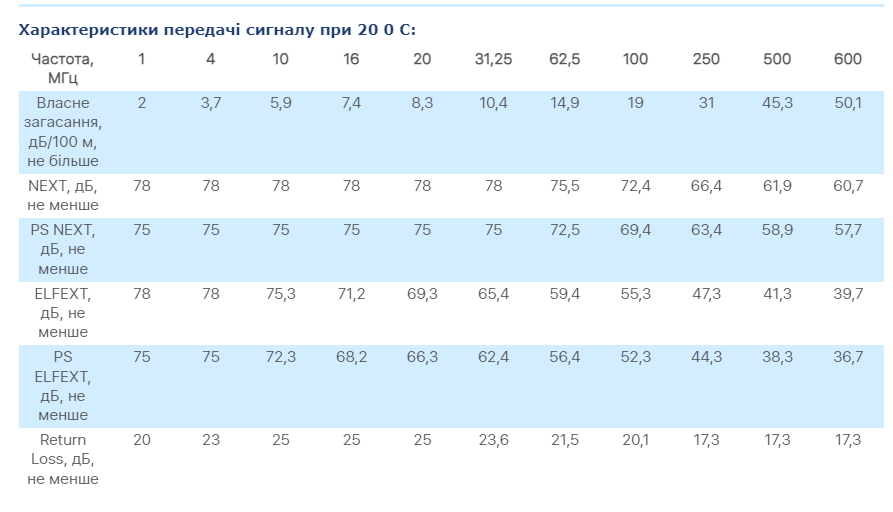 Вимога до кабелю: ДСТУ IEC 61156-5, ДСТУ EN 50288-4-1, ТУ У 27.3-05758730-097:2018.