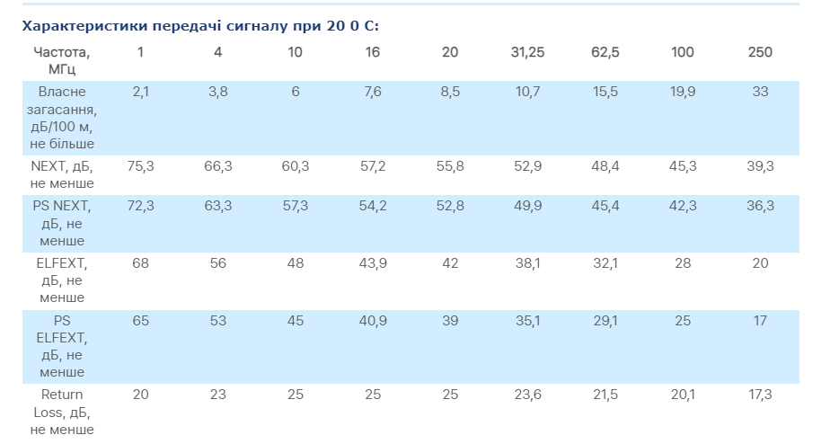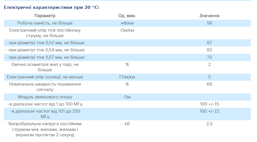 Вимога до кабелю: ДСТУ IEC 61156-5, ДСТУ EN 50288-10-1, ТУ У 27.3-05758730-097:2018