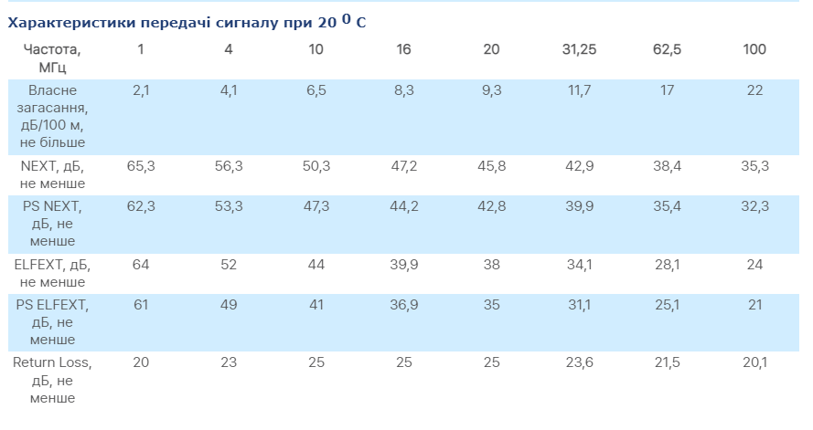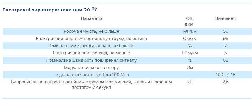 Вимога до кабелю: ДСТУ IEC 61156-5, ДСТУ EN 50288-2-1, ТУ У 27.3-05758730-100:2018